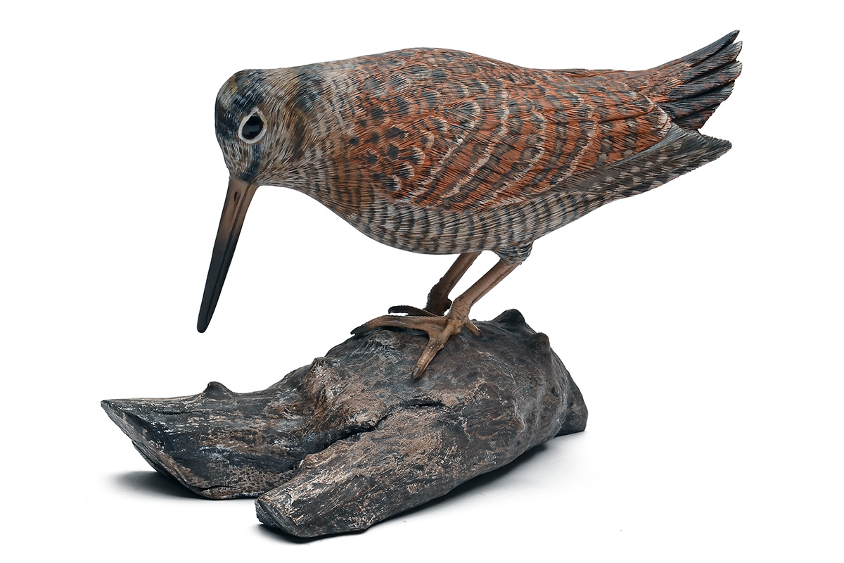 MIKE WOOD A FINE HAND-CARVED WOODCOCK,
