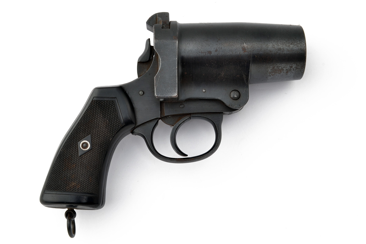 A 1 1/2in. (FLARE) SIGNAL-PISTOL SIGNED WEBLEY & SCOTT, MODEL 'No3MKI', serial no. 67682, dated for 1940, with tapering blued 4in. barrel, break open frame, guarded trigger and chequered hard rubber grips