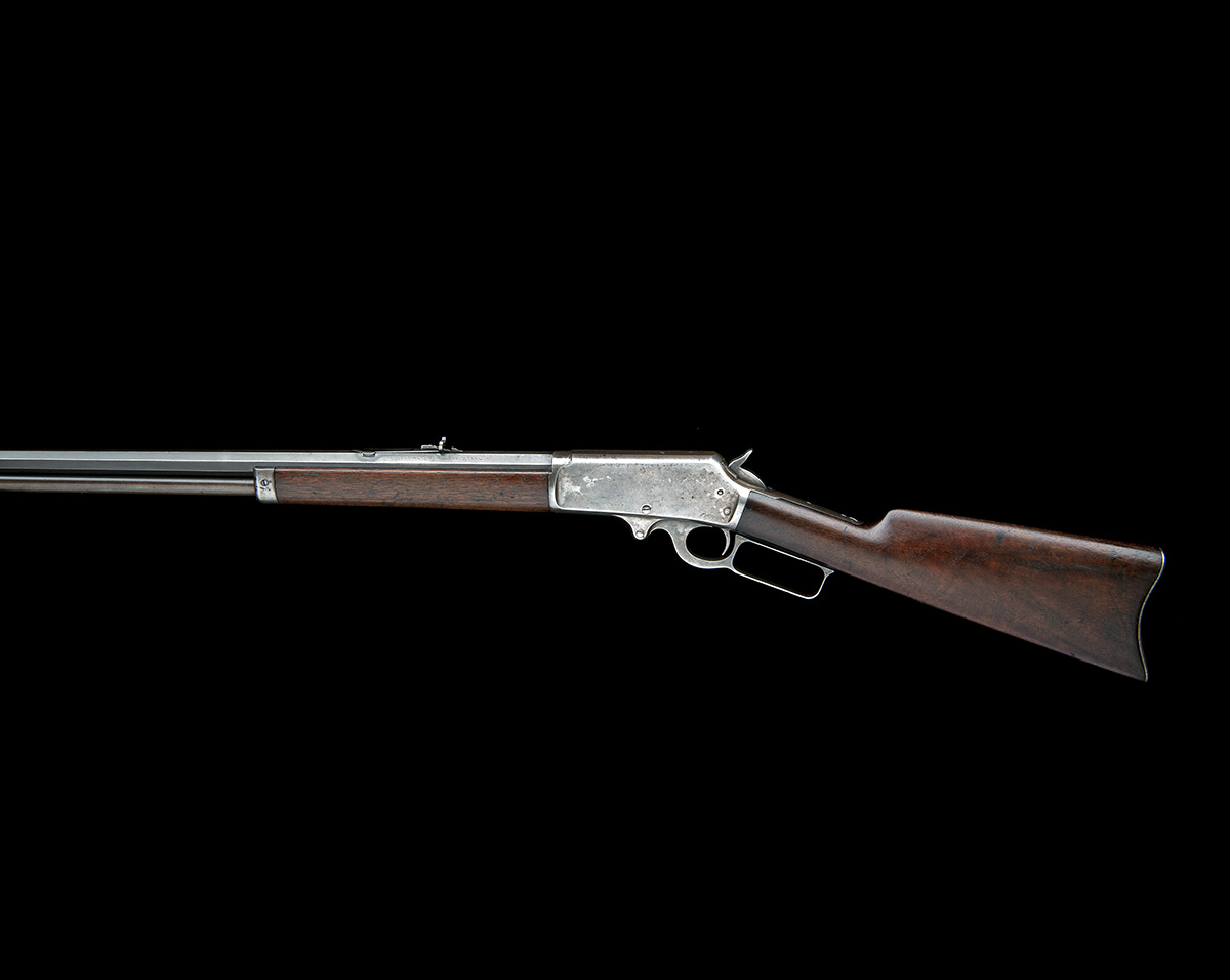 circa 1905, with tapering octagonal 28in. barrel signed on the top-flat 'MARLIN FIREARMS CO NEW-HAVEN C.T. U.S.A. PATENTED OCT 11 1887, APRIL 2 1889, AUGUST 1 1893', the left hand top-flat marked in script 'SPECIAL SMOKELESS STEEL', dove-tailed fore-sight, buck-horn rear-sight, solid receiver marked on the top 'MARLIN SAFETY', provision for rear-sight to top-tang (absent), walnut straight-hand butt-stock with semi-crescent heel-plate, squared finger-lever, plain walnut half-fore-end and full length under-barrel magazine-tube