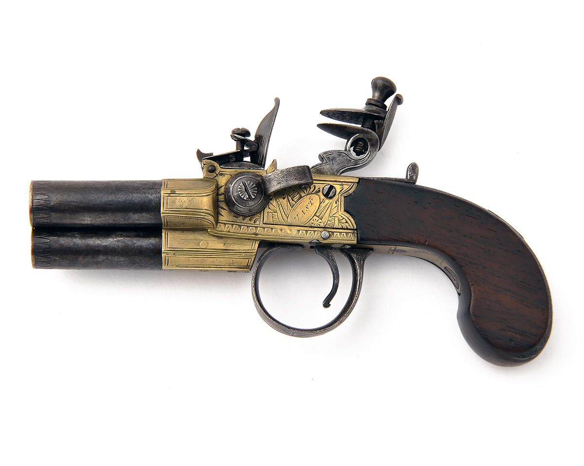 HAST, COLCHESTER A SCARCE 120-BORE FLINTLOCK TRIPLE-BARRELLED TAP-ACTION POCKET-PISTOL, no visible serial number,