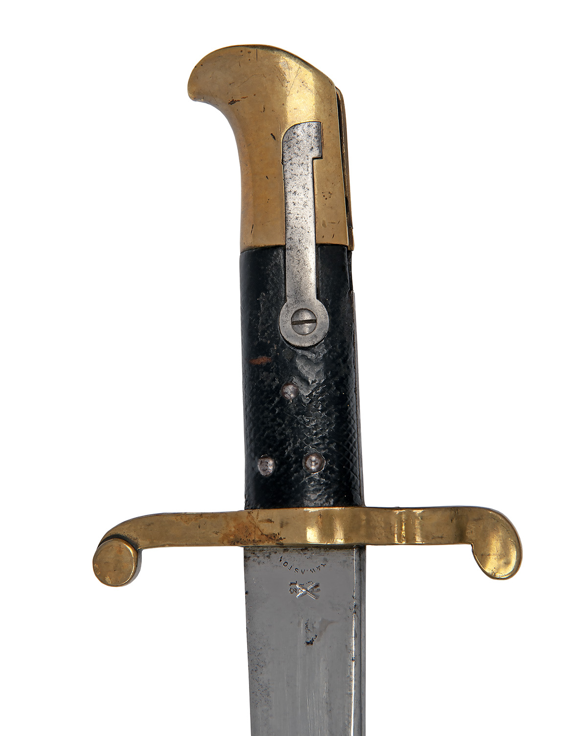 A SCARCE BRASS-MOUNTED BAYONET FOR LANCASTER'S SAPPER'S & MINER'S CARBINE, SIGNED 'R. & W. ASTON', no visible serial number,