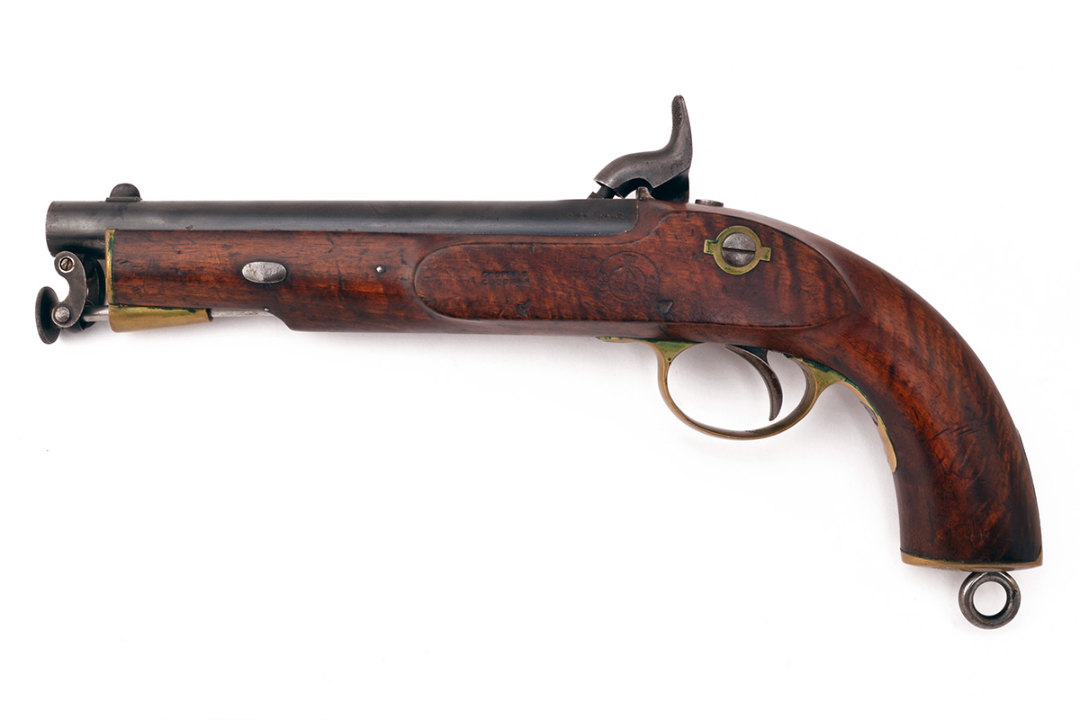 A GOOD .650 PERCUSSION SMOOTHBORE SERVICE-PISTOL, MODEL 'INDIAN LANCER'S PATTERN', no visible serial number,