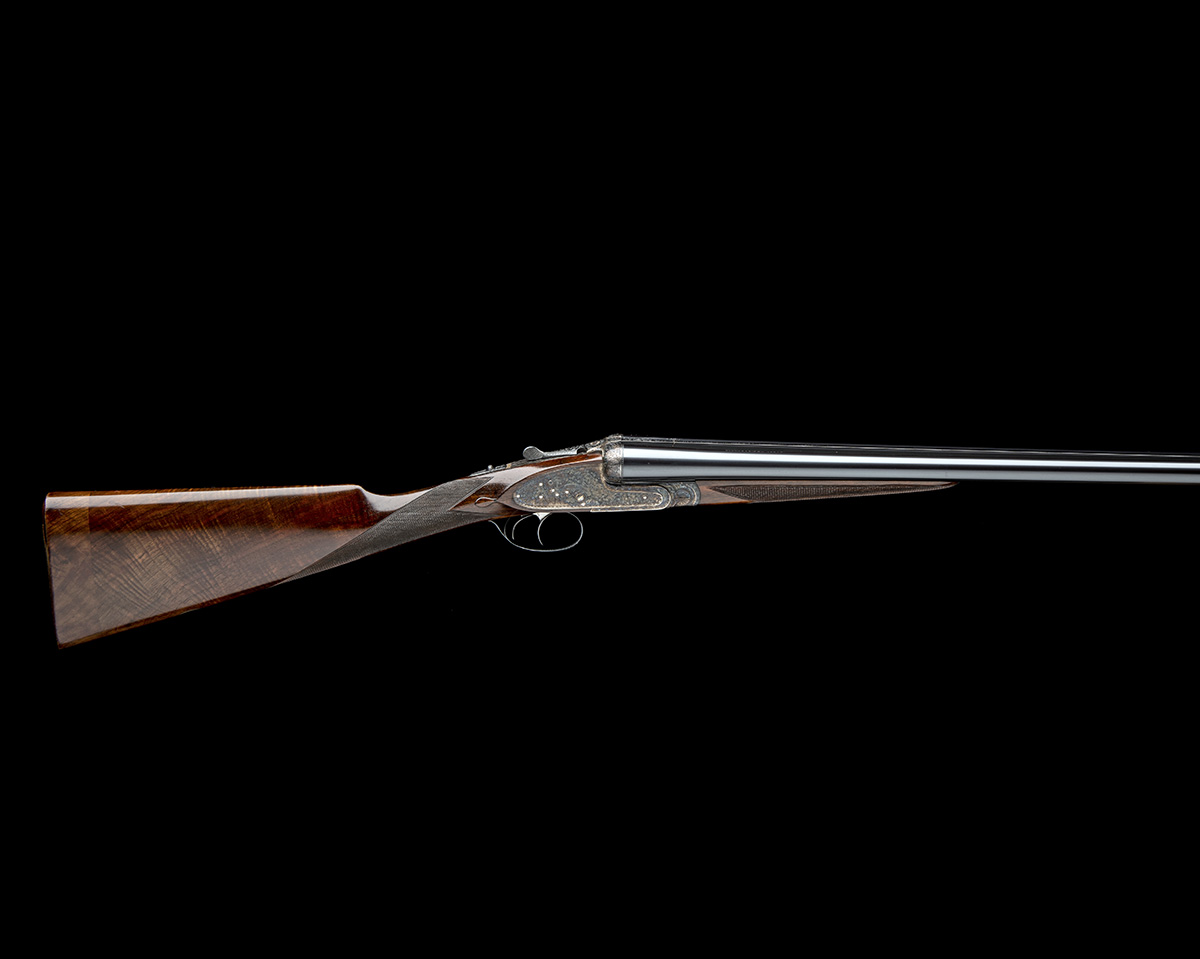28in. nitro chopperlump barrels, the rib engraved 'ESPECIALLY MADE FOR J ROBERTS & SON KING ST. LONDON', the tubes engraved 'PEDRO ARRIZABALAGA EIBAR-SPAIN', 2 3/4in. chambers, bored approx. imp. cyl. and 1/2 choke, left wall thickness at 18, rib lifting at muzzle, treble-grip action with hidden third bite, removable striker discs, automatic safety with gold-inlaid 'SAFE' detail, Holland & Holland style self-opening system, hand-detachable lockplates, gold-inlaid cocking-indicators, articulated front trigger, rolled-edge triggerguard, bold acanthus scroll engraving, retaining much original colour-hardening and finish, 15 1/4in. stock including 1 3/8in. wooden extension, weight 6lb. 13oz.