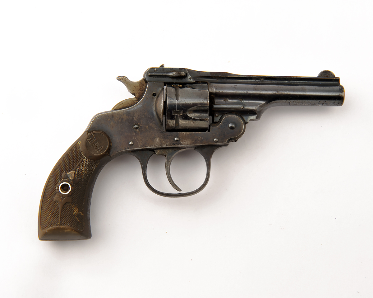 A .32 (S&W) FIVE-SHOT POCKET REVOLVER SIGNED HOPKINS & ALLEN, MODEL 'POLICE SAFETY', serial no. E4356, with 3in. blued barrel, break open frame, fluted cylinder and chequered hard rubber grips (frame mounted firing pin absent)