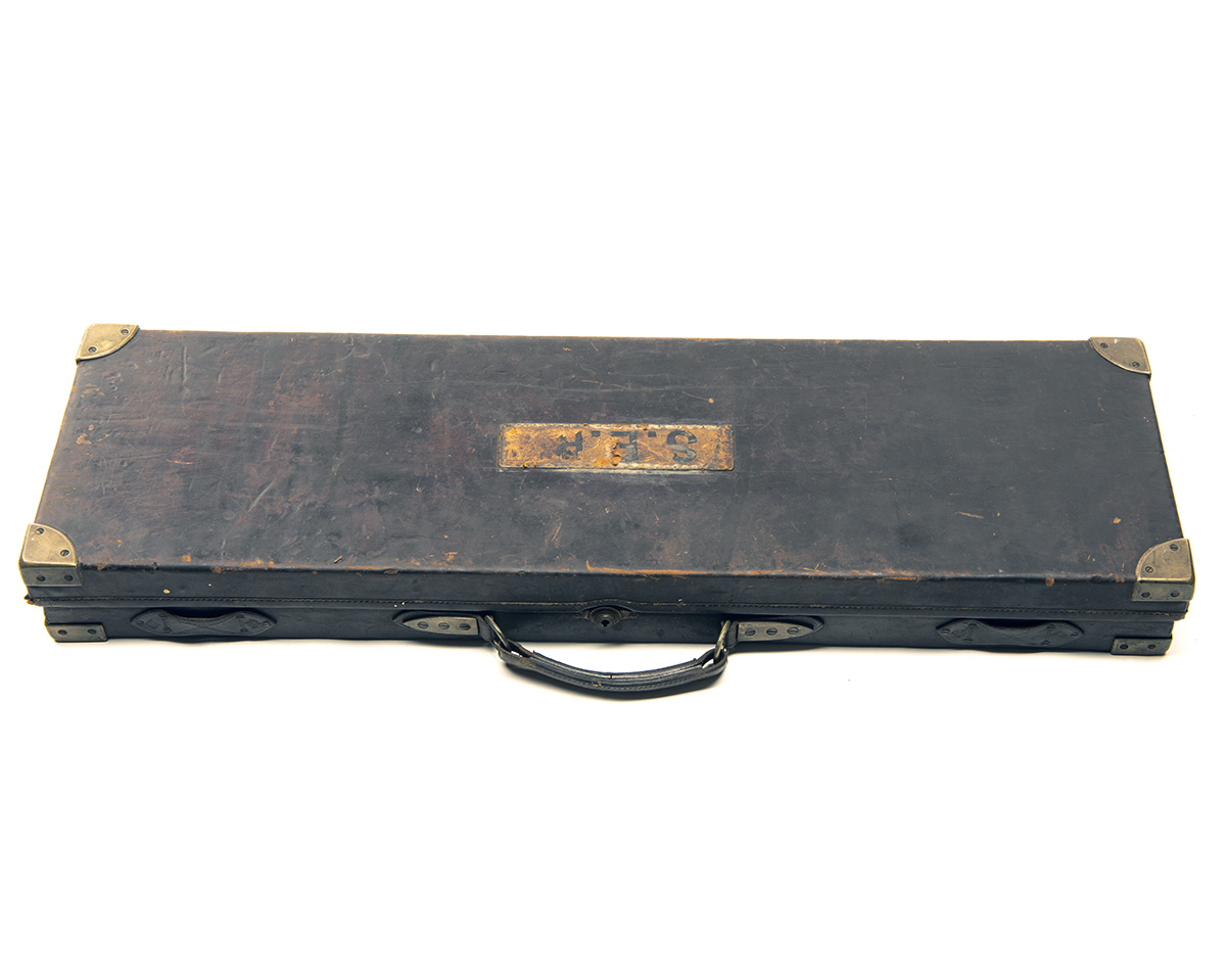fitted for 28in. barrels (could adjust to 30in.), the interior lined with blue baize, a Watson Bros. trade label, brass lock (key missing)