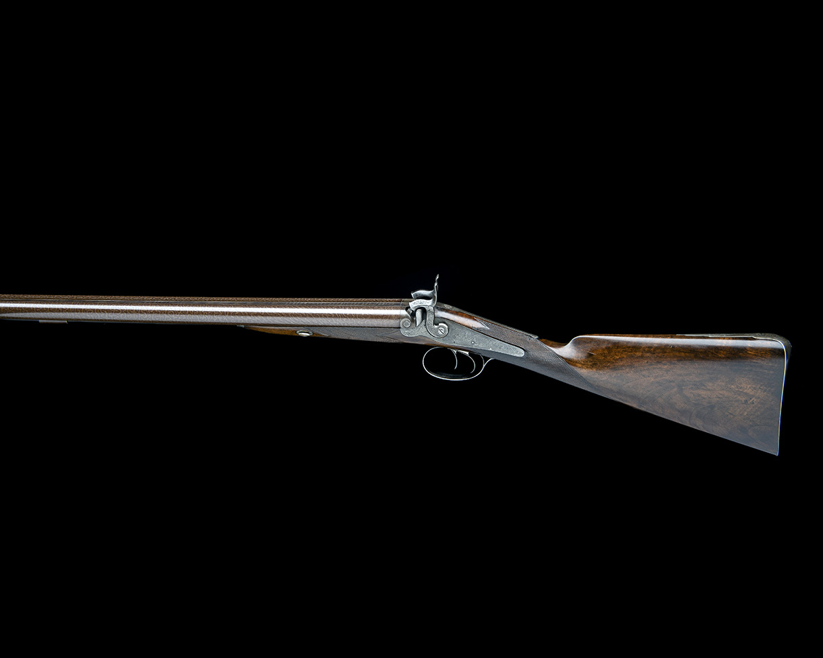 A CASED 12-BORE PERCUSSION DOUBLE-BARRELLED SPORTING-GUN, serial no. 629,