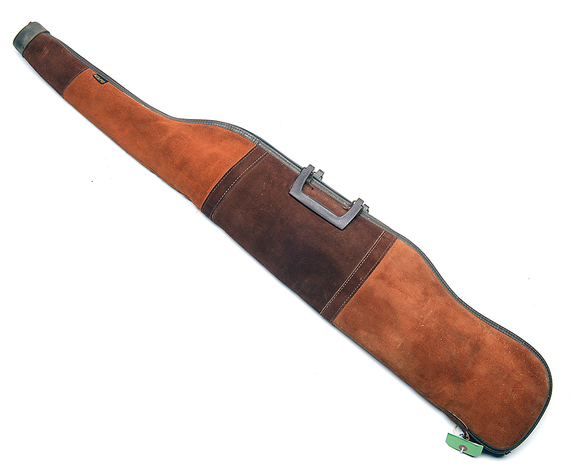 with 18 1/2in. barrel (rear-sight absent), metal tap handle, plain air-chamber and beech half-stock, fitted with a Tasco 4x20 telescopic sight and in a suede slip