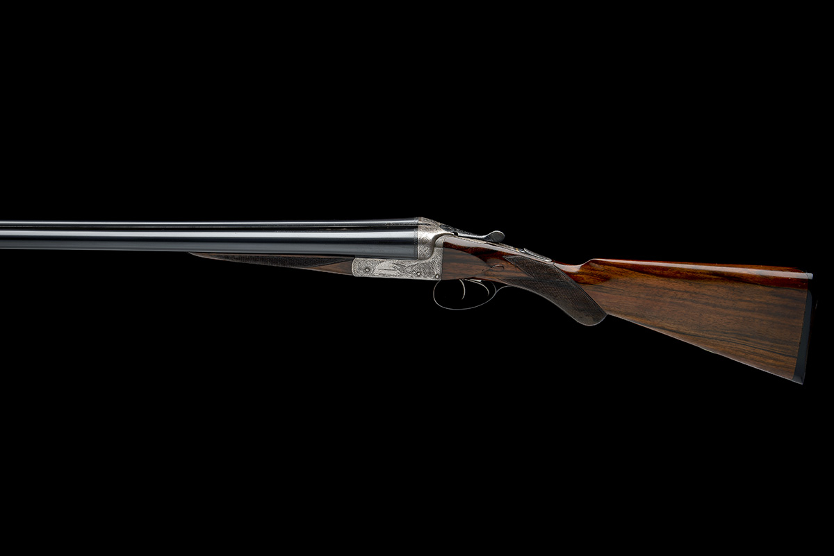 circa 1948, 32in. nitro reproved barrels (in 2020), the rib engraved 'LONG RANGE. HIGH VELOCITY. BARRELS GUN. 3 1/4 CASE', the tubes engraved 'LINCOLN JEFFRIES. LINCOLN WORKS. 120. STEELHOUSE LANE. BIRMINGHAM.', 3in. chambers, bored approx. 3/4 choke in both, large treble-grip action, automatic safety with gold-inlaid 'SAFE' detail, acanthus scroll engraving surrounding game scenes of duck and goose, brushed and reblued finish, 14 1/4in. semi-pistolgrip stock including buttplate, weight 8lb. 1oz.