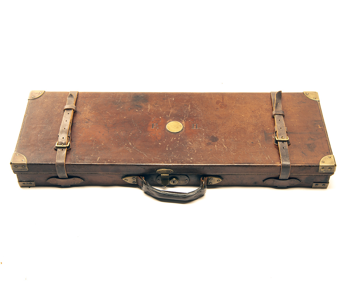 A BRASS-CORNERED LEATHER DOUBLE GUNCASE,