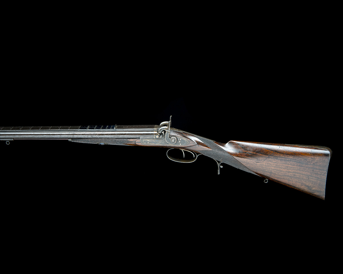 A FINE 40-BORE (BELTED BALL) PERCUSSION DOUBLE-RIFLE WITH TROPHY RIB AND AUXILIARY SIGHT, serial no. 7767,