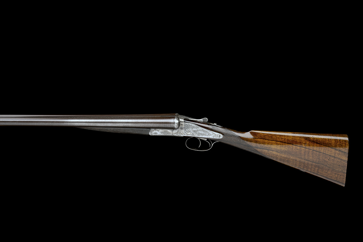 28in. nitro reproved fine damascus barrels (pit forward of left forcing cone), the rib engraved 'J. BLANCH & SON. 29 GRACECHURCH STREET. LONDON.', 2 1/2in. chambers, bored approx. 1/4 and 1/2 choke, treble-grip action with Scott patent gas check system, patent no. 617 of 1882, use number 3886, automatic safety with gold-inlaid 'SAFE' detail, gold-inlaid cocking-indicators, fine acanthus scroll engraving with stylised foliate fronds, retaining very slight traces of original colour-hardening and finish, 13 7/8in. stock, fore-end with 'J. BLANCH & SON'S IMPROVED SNAP BOLT' release lever, weight 6lb. 7oz., in a brass-cornered leather bound case with contemporary J. Blanch trade label
