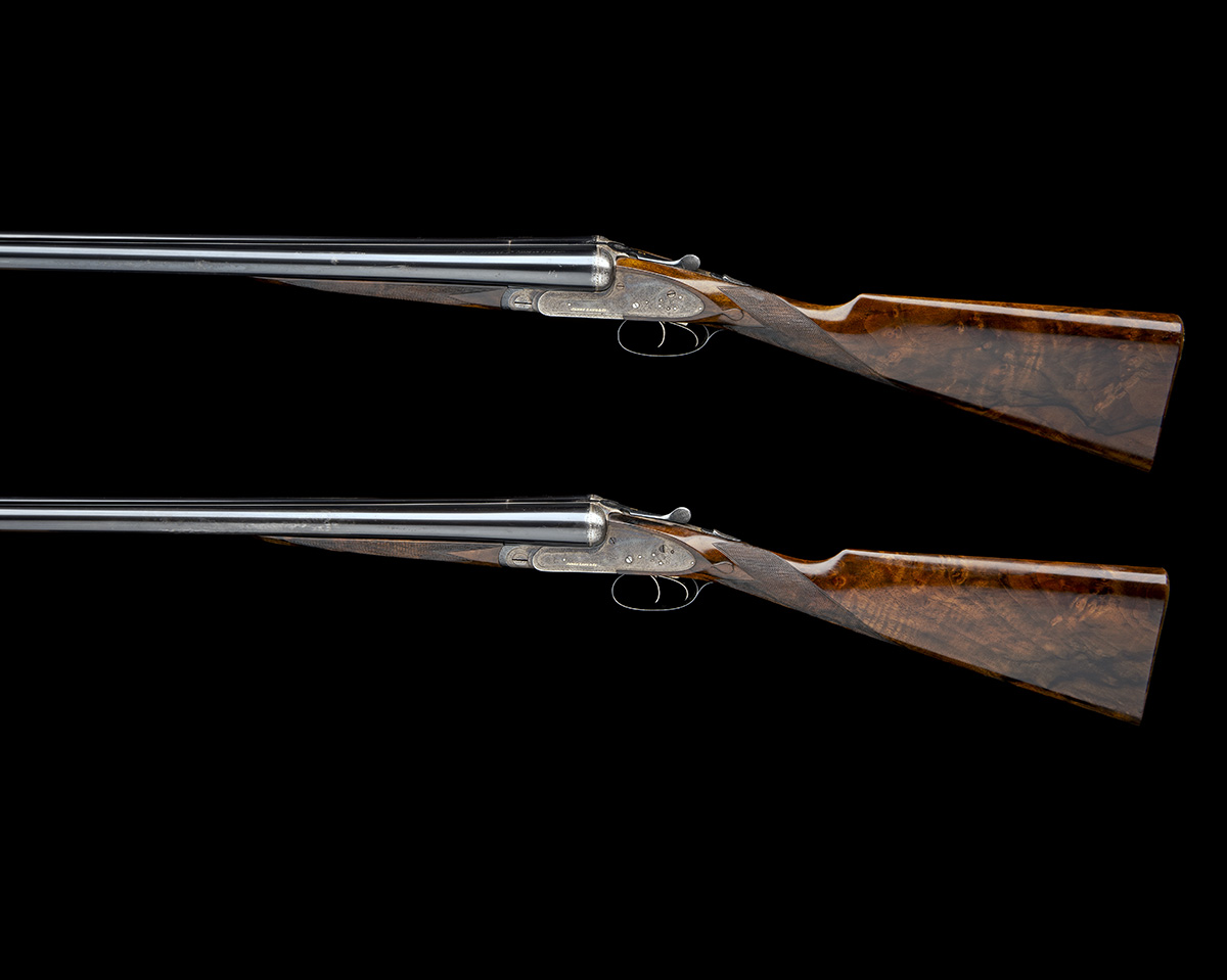 Provenance: The makers records list both guns as having been made as '12-bore top snap hammerless ejector guns with 30in. barrels, gun No. 10665 being completed on the 24th January 1894 and sold to a Hector Christie on the 2nd August 1894, (with a later note saying 'In Sothebys 11/91 New barrels by "Masters"). Gun No. 10801 was completed on the 18th April 1895 for 'Gibbs'.