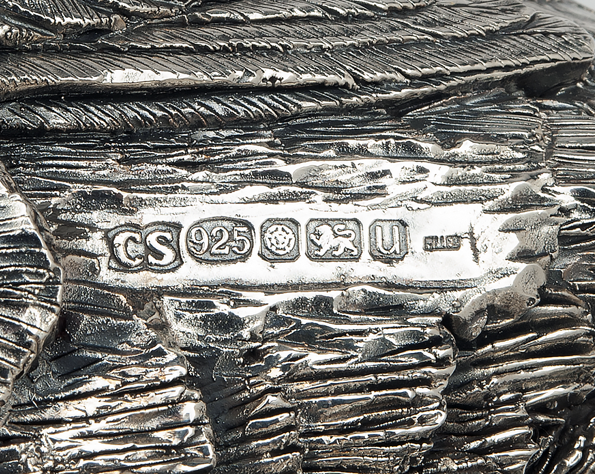 A FINE NEW AND UNUSED STERLING SILVER ELECTROFORM OF A BRACE OF PARTRIDGES,