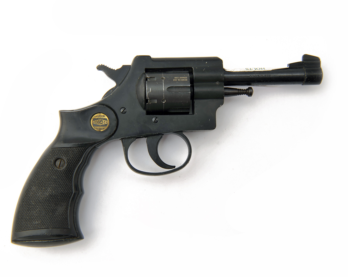 A .22 (L/R) SIX-SHOT REVOLVER SIGNED GECADO, serial no. 11684 with blued 3 5/8in. barrel, solid alloy frame, swing-out fluted cylinder and chequered plastic grips,