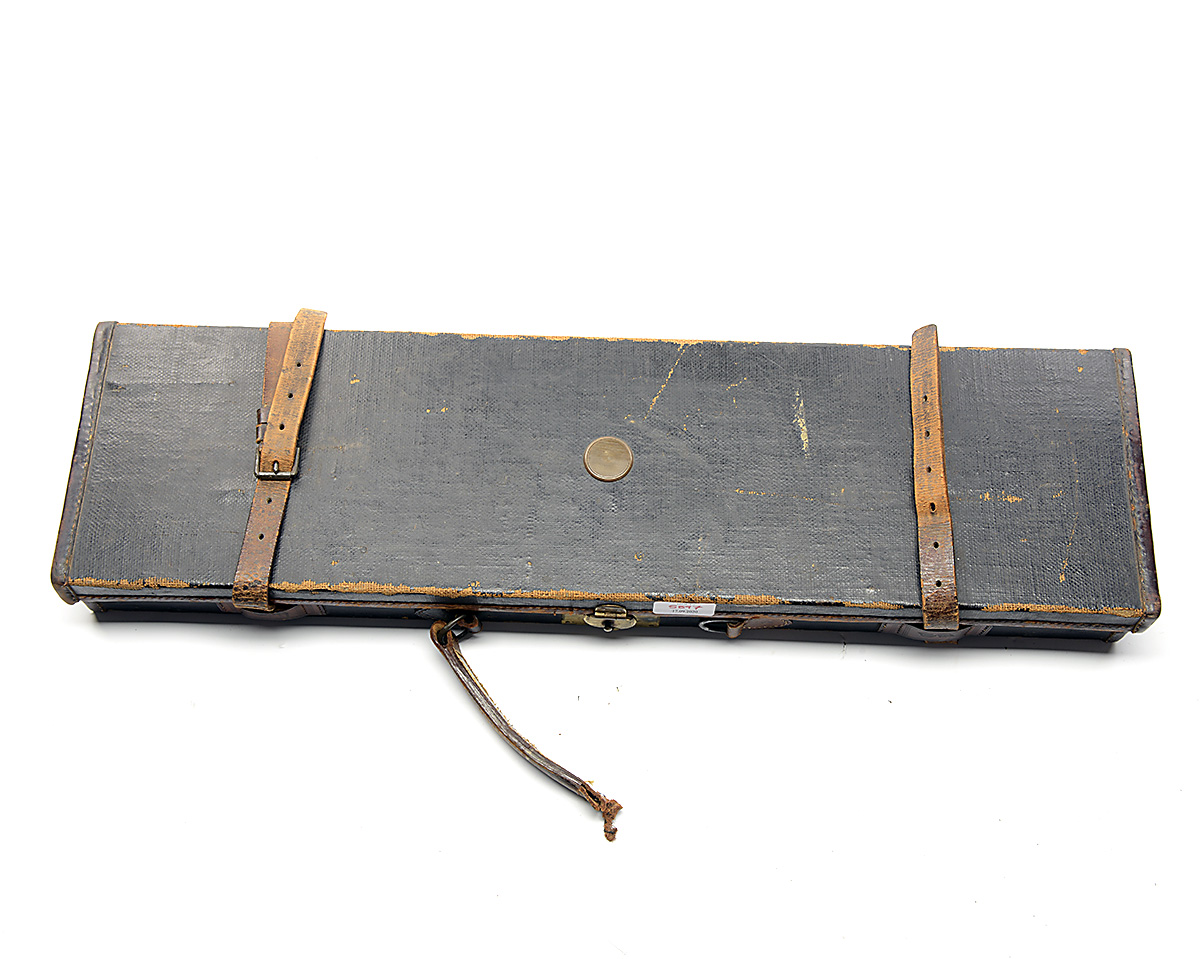VEISEY & CO. 12-BORE ROTARY-UNDERLEVER HAMMERGUN, n.v.s.n., 29 3/4in. black powder reproved damascus barrels (pitted), rib engraved 'AGNEW & SON. 68. SOUTH STREET. EXETER.', 2 1/2in. chambers, bored approx. true cyl. in both, Jones patent rotary underlever, slender carved serpentine fences, rebounding back-action locks, beaded border and partial scroll engraving, 14 1/4in. stock including steel buttplate, weight 7lb. 2oz., in an Agnew & Sons leather case