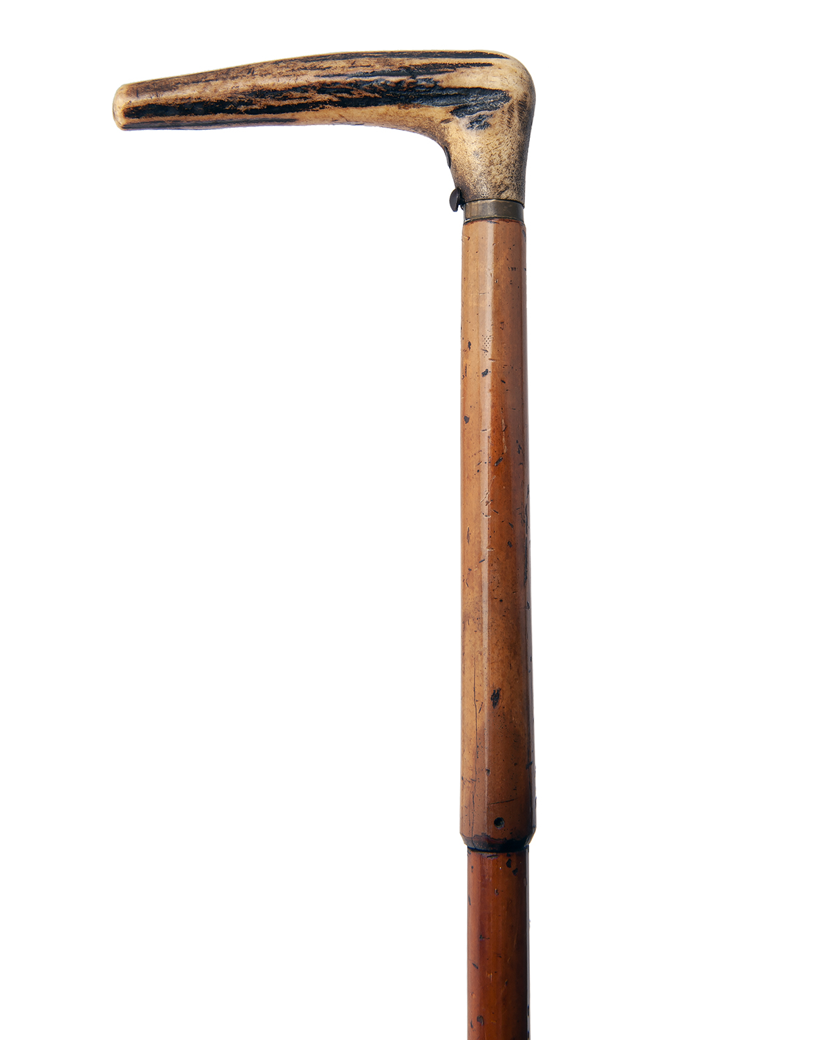 A SCARCE 7mm (W/S) SINGLE-SHOT WALKING-STICK GUN, UNSIGNED, no visible serial number,