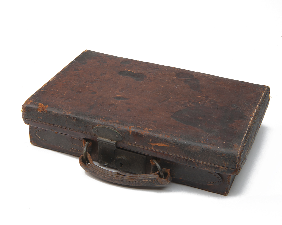 * A RARE SMALL LEATHER CARTRIDGE MAGAZINE,