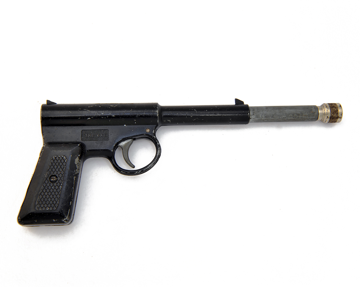 A COLLECTION OF FIVE .177 PUSH-BARREL AIR-PISTOLS SIGNED T.J. HARRINGTON, MODEL THE GAT, no visible serial numbers,