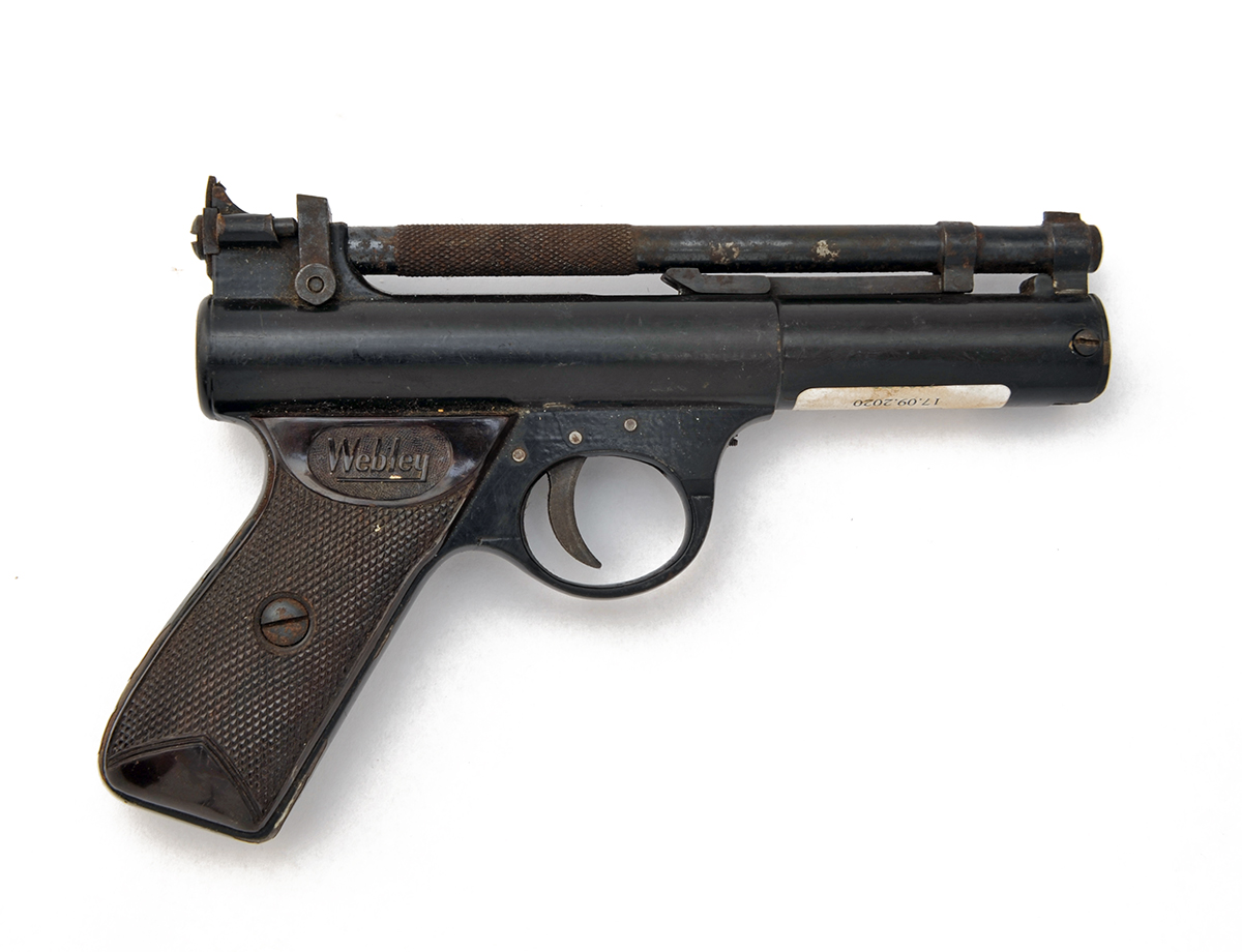 A .22 BARREL-COCKING AIR-PISTOL SIGNED WEBLEY & SCOTT, MODEL PREMIER, batch no. 558,