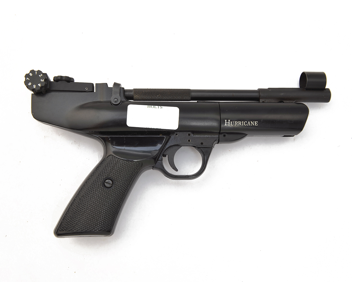 A .22 BARREL-COCKING AIR-PISTOL SIGNED WEBLEY & SCOTT, MODEL HURRICANE, no visible serial number,