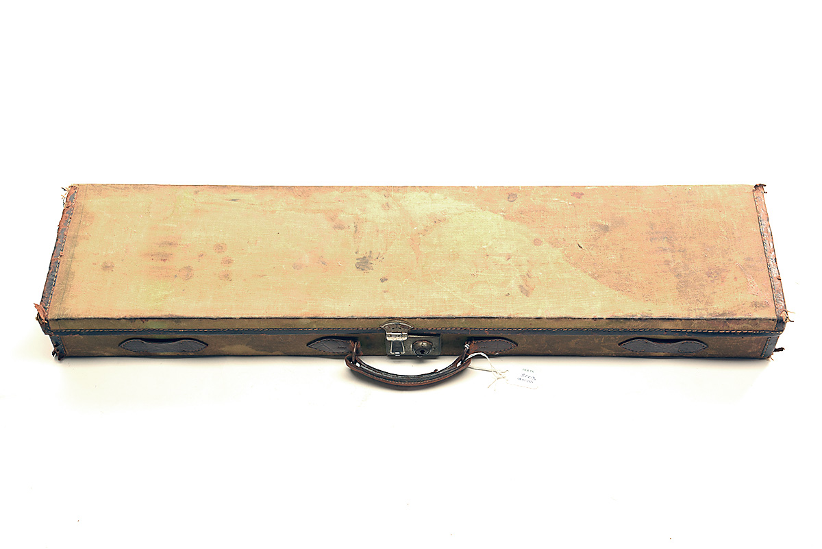 A CANVAS AND LEATHER SINGLE GUNCASE, fitted for 32in. barrels, the interior lined with green baize, single lock (including key)