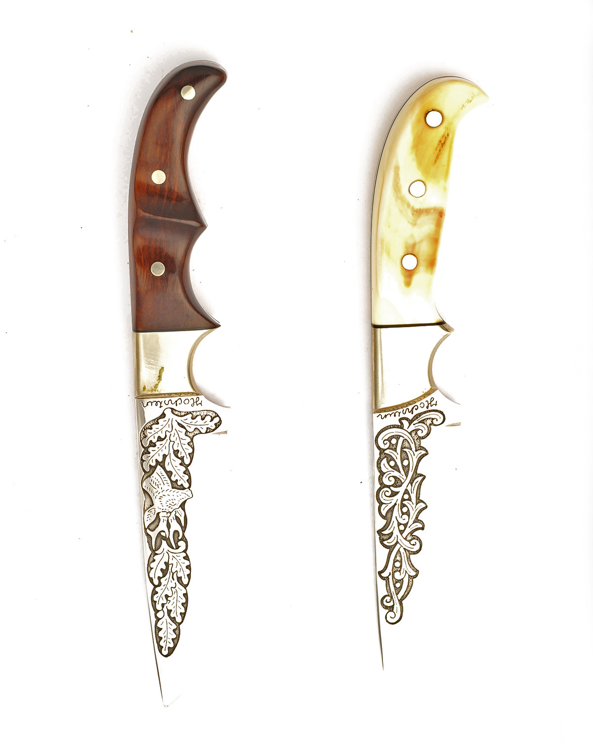 TWO HAND-MADE AND ENGRAVED HUNTING-KNIVES SIGNED HOCHSTEIN,