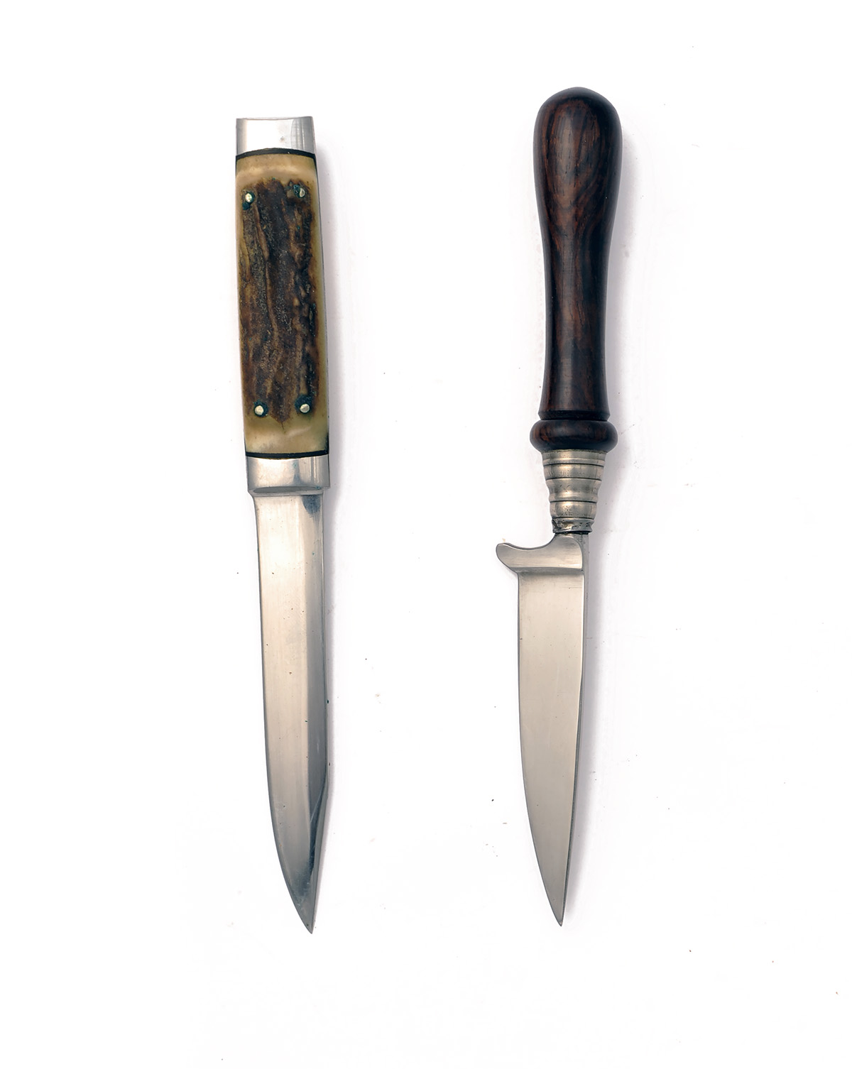 A GERMAN SPORTING BOOT-KNIFE AND ANOTHER OF TRADITIONAL FORM, THE FIRST UNSIGNED