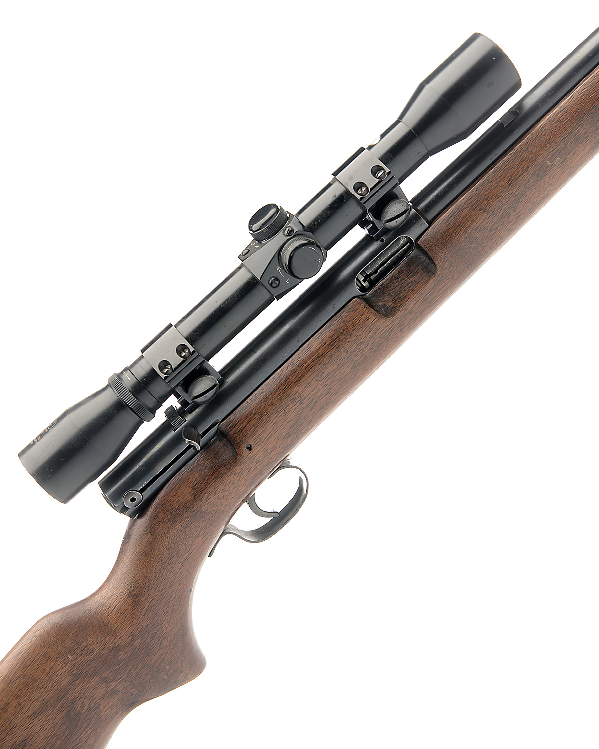 TWO WINCHESTER .22 L.R. 'MODEL 74' SELF-LOADING SPORTING RIFLES, serial no. 375242A, 101676, WINCHESTER .22 self-loading rifle, serial no. 101676, 23 7/8in. nitro barrel, threaded for sound moderator, bead fore-sight, leaf rear-sight, scope rail, manual safety, tubular stock magazine, WINCHESTER .22 self-loading rifle, serial no. 375242, 21 7/8in. nitro barrel, bead fore-sight, rear-sight missing, fitted with a Bisley 4x32 telescopic sight, tubular stock magazine (2)