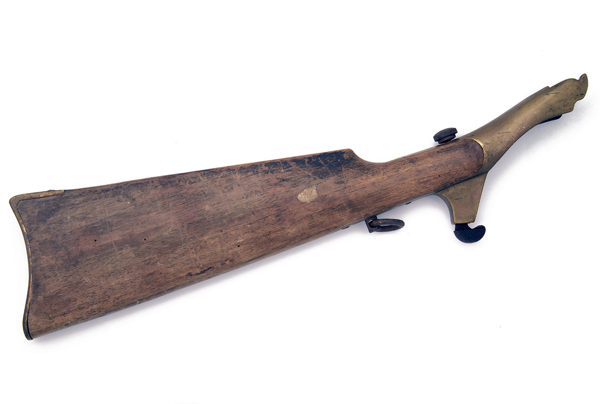 A REPRODUCTION SHOULDER-STOCK FOR A COLT ARMY REVOLVER, with brass head-stock, artificially aged throughout