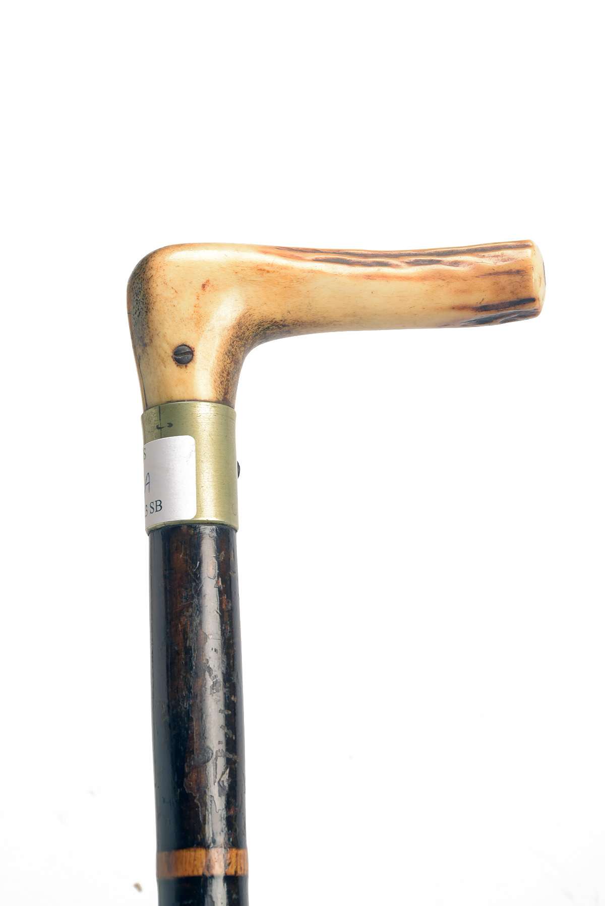 A 7mm W/S WALKING STICK SHOTGUN, UNSIGNED, no visible serial number, with 23 1/4in. cane-covered barrel, twist and pull brass-lined action and angled staghorn grip