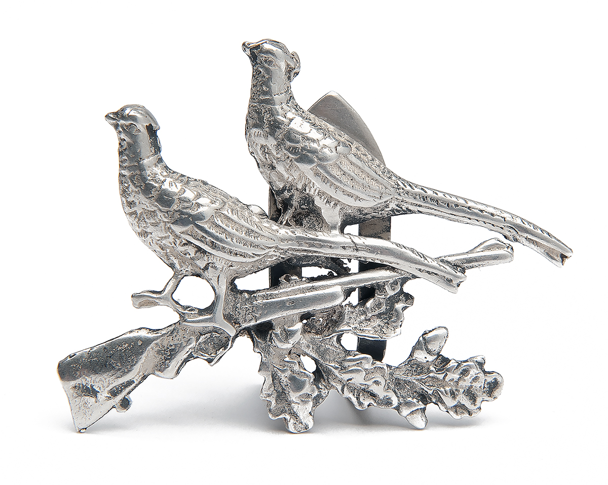 with 925 London silver hall marks, dated 1998, showing a brace of Pheasant over a rifle with acorn leaves, measuring approx. 2in. x 1 1/2in.