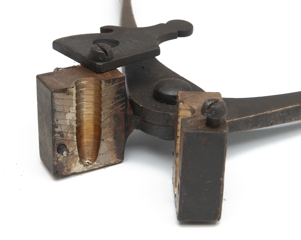 A BRASS .475 BULLET MOULD, serial no 05227, with spruce cutter