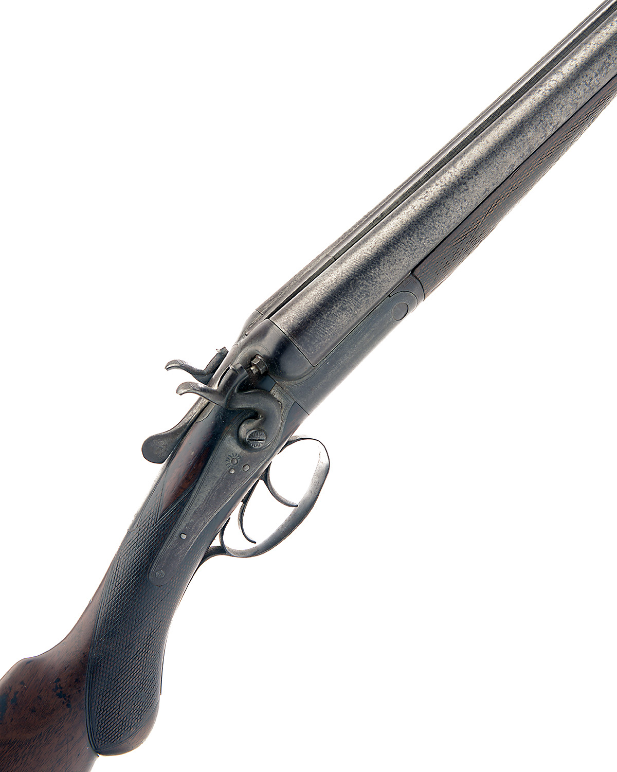 THE STOCK, ACTION AND FORE-END ONLY OF AN ENGLISH 12-BORE ROTARY-UNDERLEVER HAMMERGUN, nvsn;