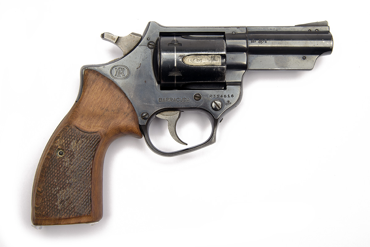 A .357 (MAG) TWO-SHOT REVOLVER SIGNED F.N., MODEL 'BROWNING BARRACUDA', serial no. R354616, converted to a dispatch pistol for the UK market, with sighted 3in. barrel, blued frame and fluted swing-out cylinder, chequered wood grips, 9 3/4in. overall