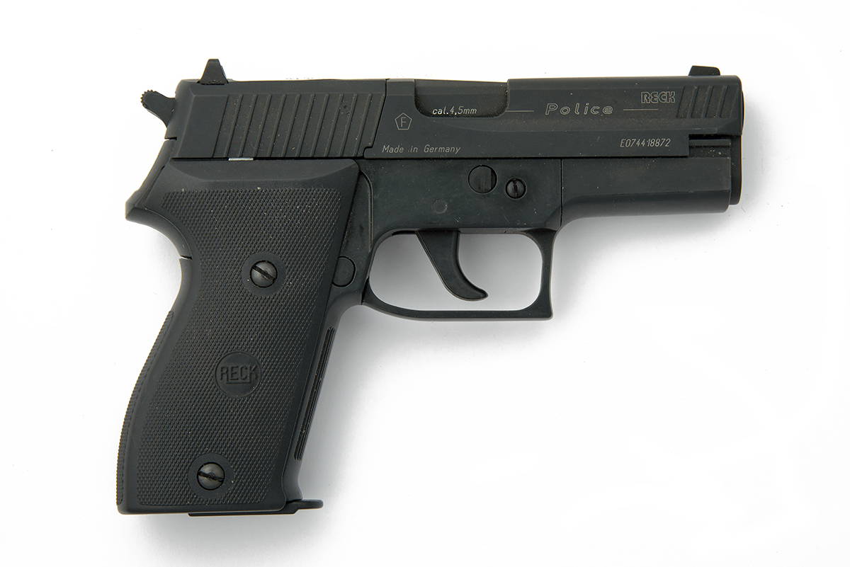 A .177 CO2-POWERED AIR-PISTOL SIGNED RECK, MODEL POLICE, serial no. E074418872,