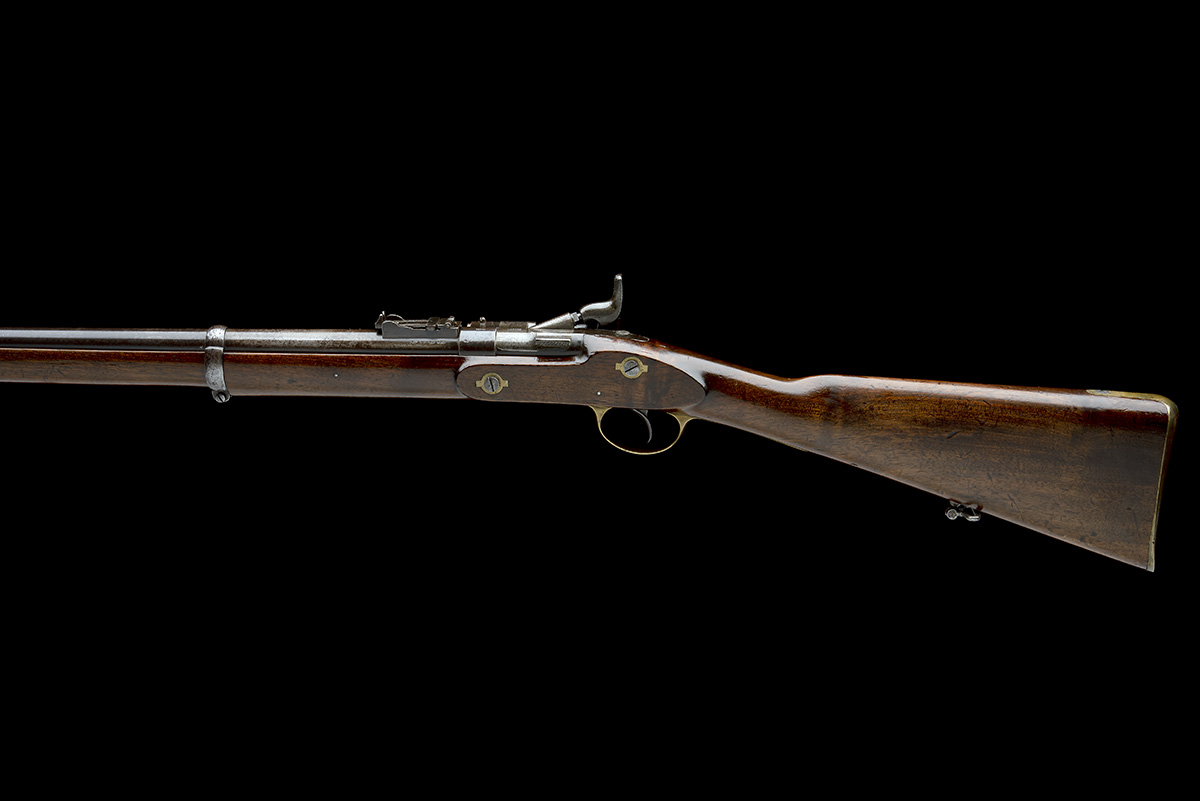A SCARCE .577 (SNIDER) OVAL-BORED BREECH-LOADING RIFLE, MODEL 'LANCASTER PATENT TWO-BAND SNIDER', no visible serial number,
