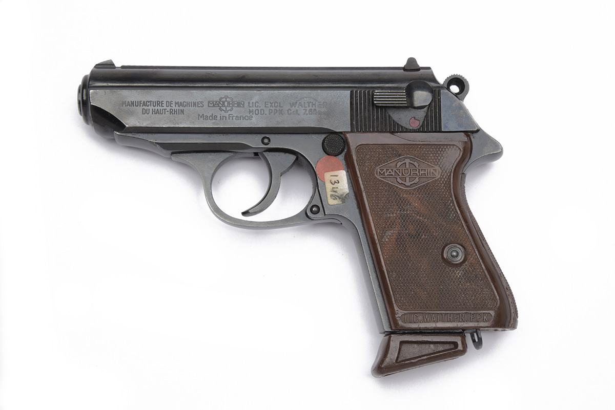 ** A 7.65mm (.32 ACP) SEMI-AUTO PISTOL SIGNED MANURHIN, MODEL 'PPK' serial no. 214187 with a 3 1/2in barrel, blued slide and frame with brown chequered plastic grips.
