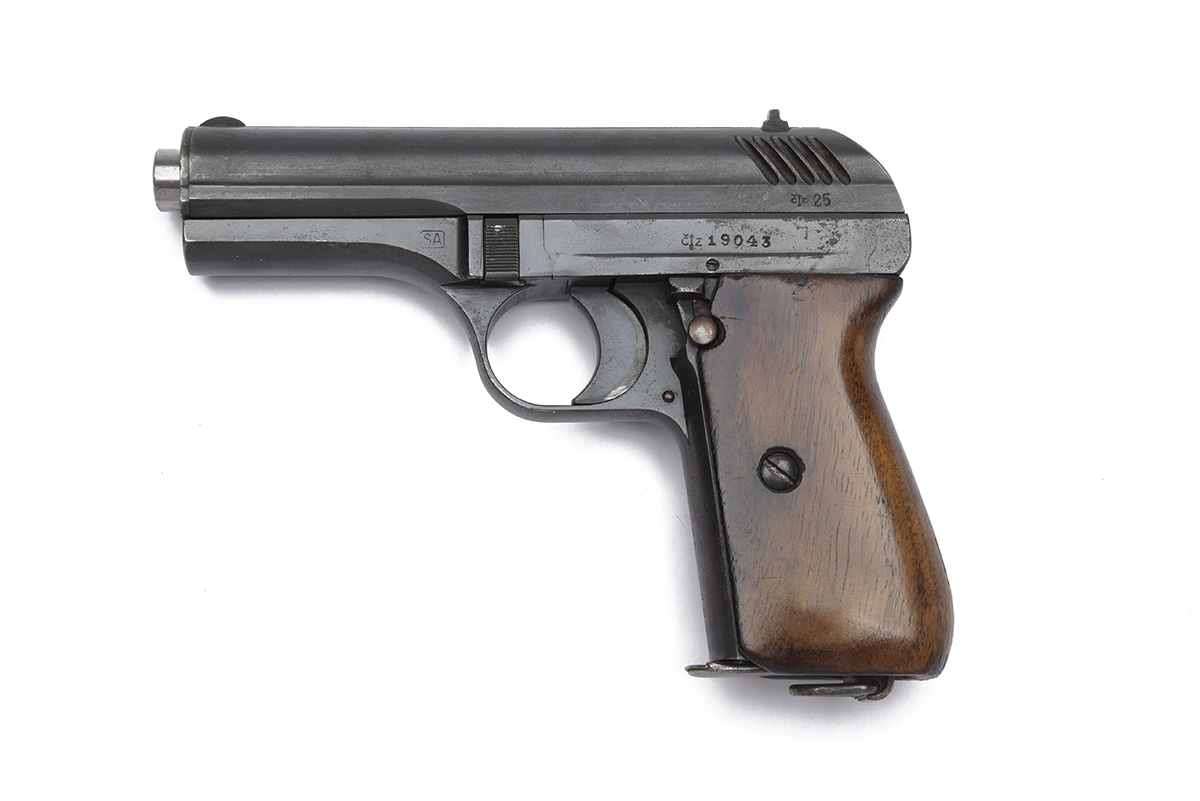 ** A 9mm (.380) SEMI-AUTO PISTOL SIGNED C.Z. MODEL '25' serial no. 19043, with a 3 1/2in. barrel, blued finish to slide and frame, wooden grips and a lanyard ring