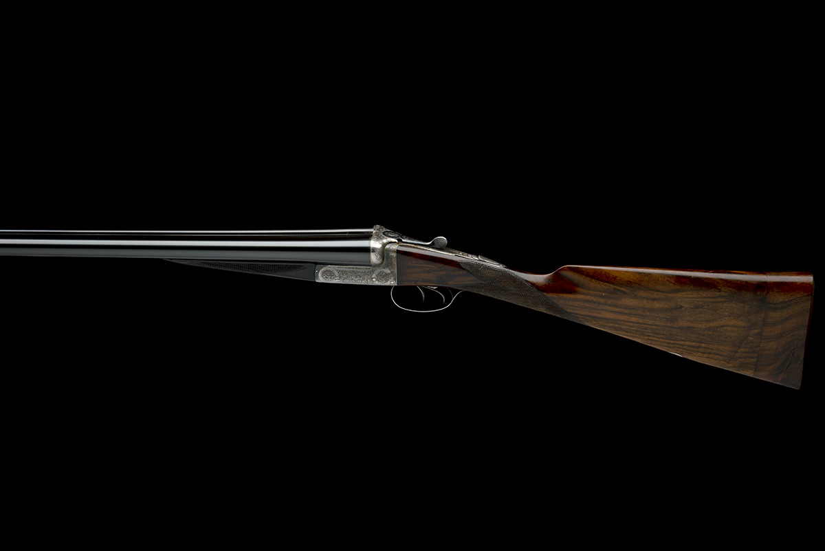 circa 1955, 28in. nitro barrels, the rib engraved 'GALLYON & SONS. LTD. CAMBRIDGE. KINGS LYNN & PETERBOROUGH.', 2 1/2in. chambers, bored approx. 1/4 and 3/4 choke, toplever engraved with the cornucopia, automatic safety with inlaid 'SAFE' detail, bouquet and scroll engraving, retaining some original colour-hardening and finish, the triggerguard also engraved with the cornucopia, 15 1/2in. figured stock including 1 3/4in. wooden extension, weight 6lb. 7oz.