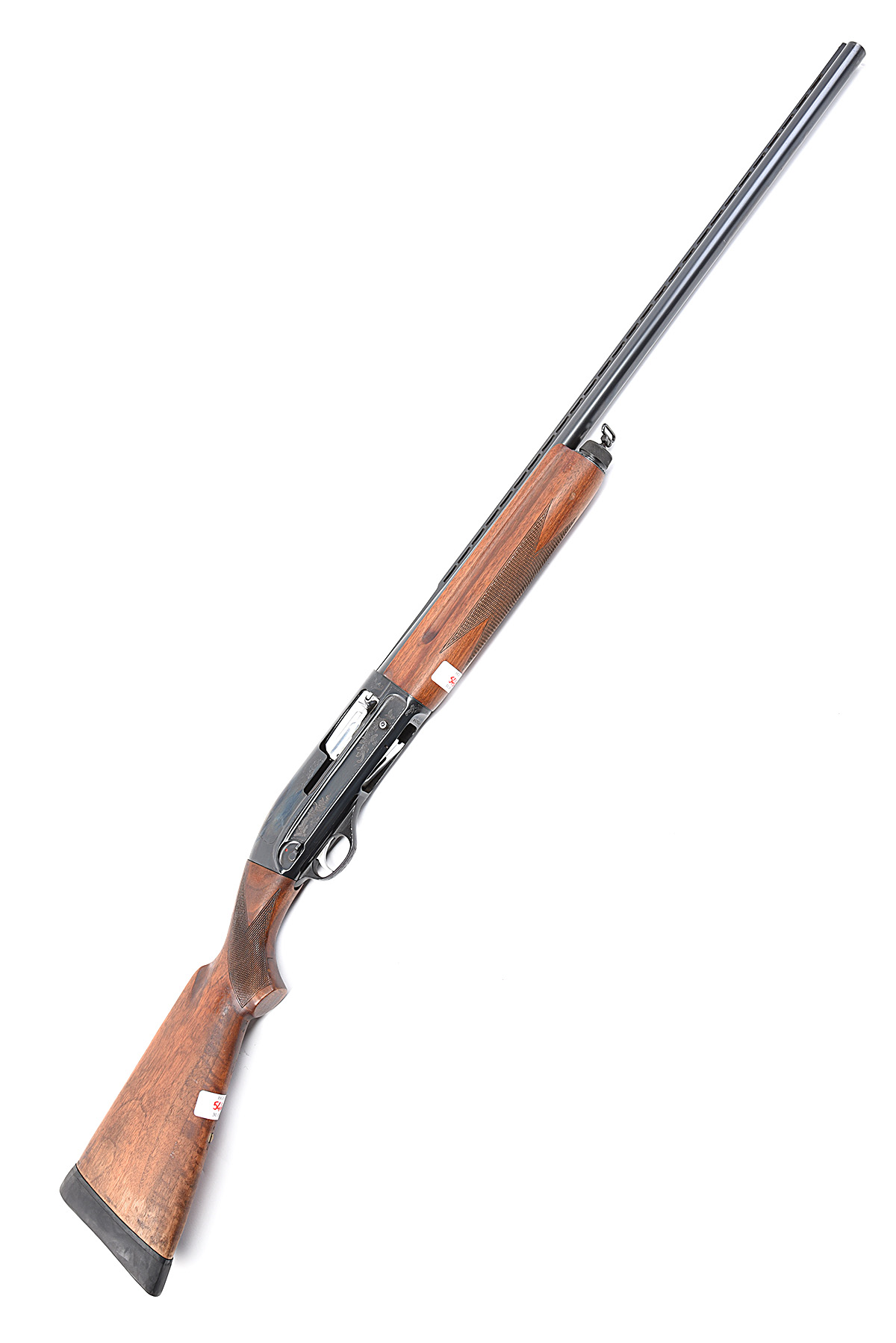TULA 12-BORE 'MU-21-12' SEMI-AUTO SHOTGUN, serial no. N4703, circa 1974, restricted magazine, 29 1/2in. nitro barrel with 7mm raised ventilated matt rib, 2 3/4in. chamber, bored approx. full choke, sidelever safety, border and acanthus leaf engraving, blacked finish, 14 1/2in. pistolgrip stock including rubber recoil pad, with cheekpiece, sling swivels