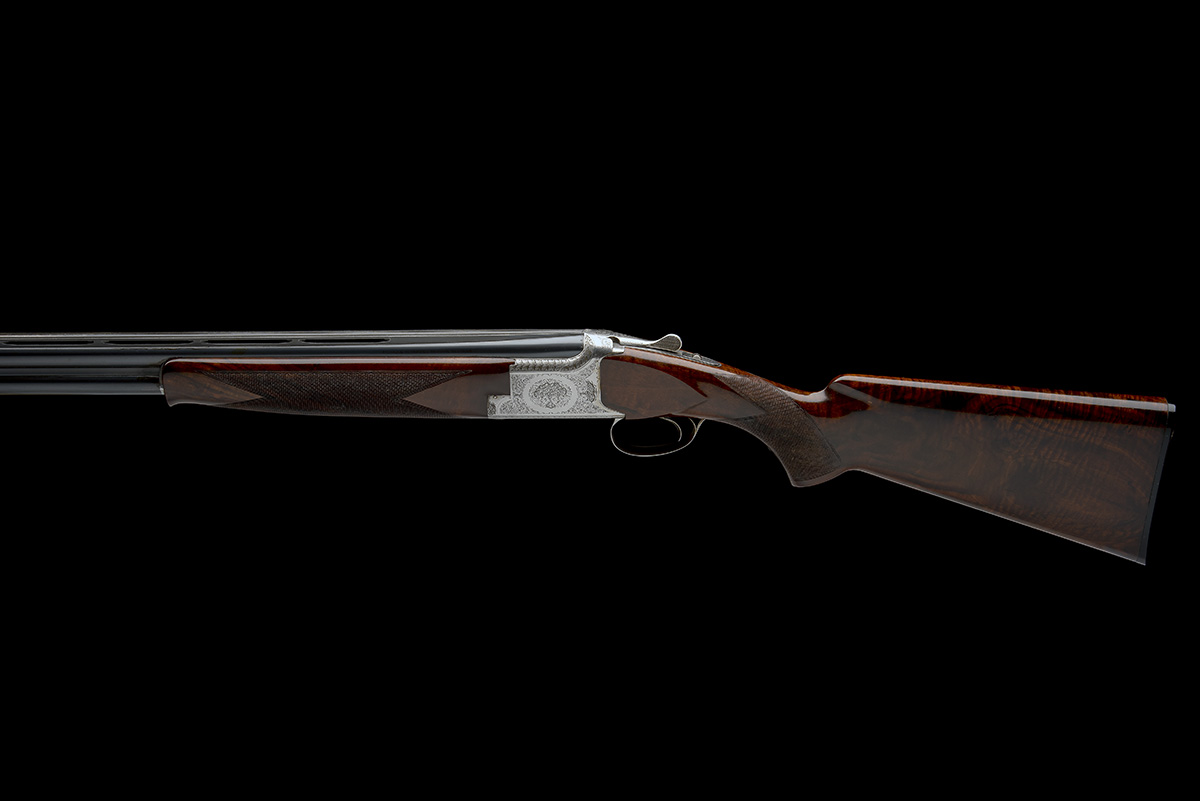 dated 1979, 27 1/2in. nitro barrels with 12mm ventilated matt top-rib, 2 3/4in. chambers, bored approx. 1/4 and 1/2 choke, hold-open toplever, manual safety with integral barrel selector switch, floral and scroll engraving, bright finish overall, 14 1/4in. figured pistolgrip stock including trademark buttplate, weight 7lb. 3oz.