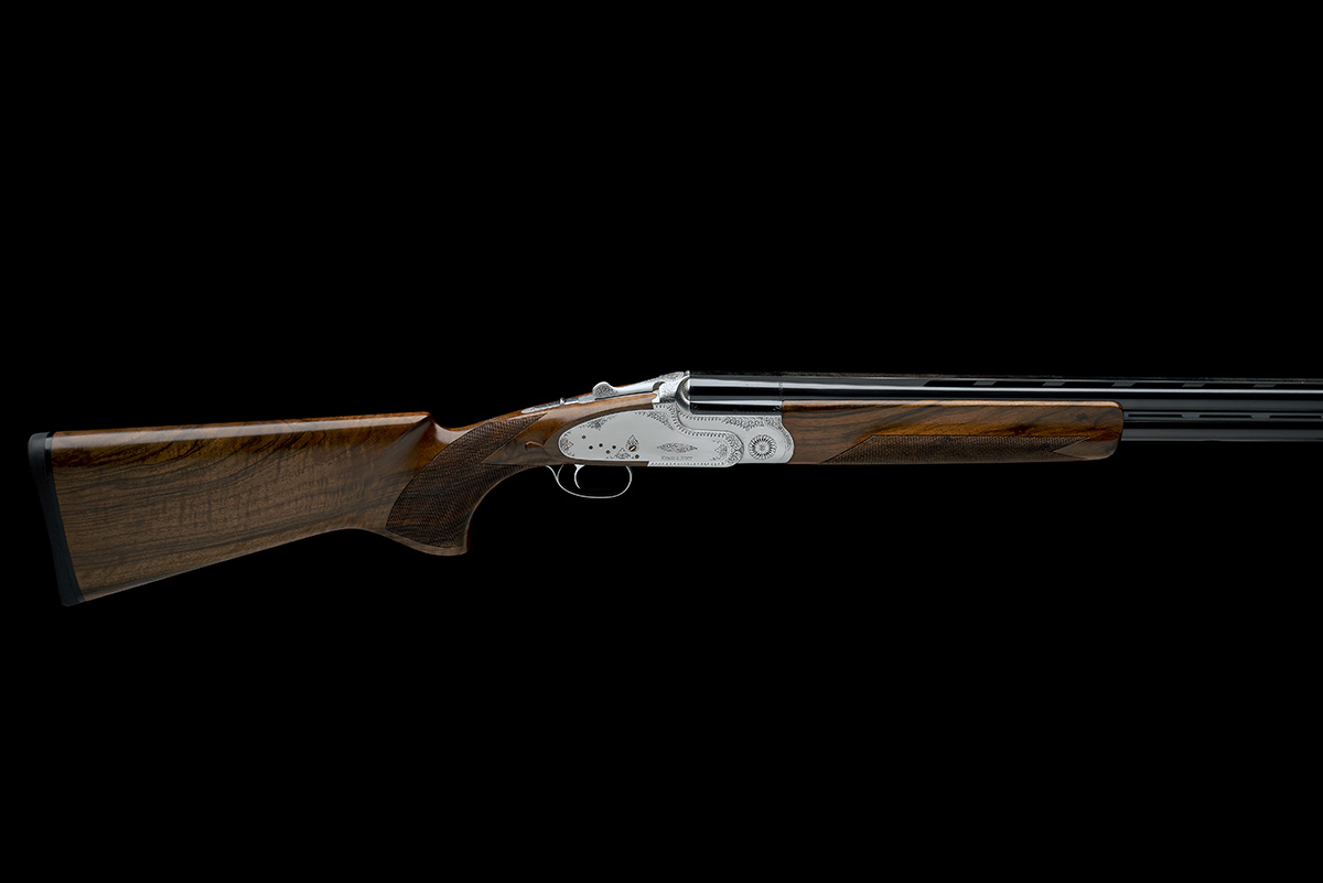 dated 2012, 30in. nitro barrels with ventilated mid-rib (some loss of bluing) and 8mm ventilated matt top-rib, 3in. chambers, multichokes (no spares), hold-open toplever, manual safety, cocking-indicators, pins blued, border engraving, matt silver finish, 15in. pistolgrip stock including 1/2in. rubber recoil pad, weight 8lb. 7oz.