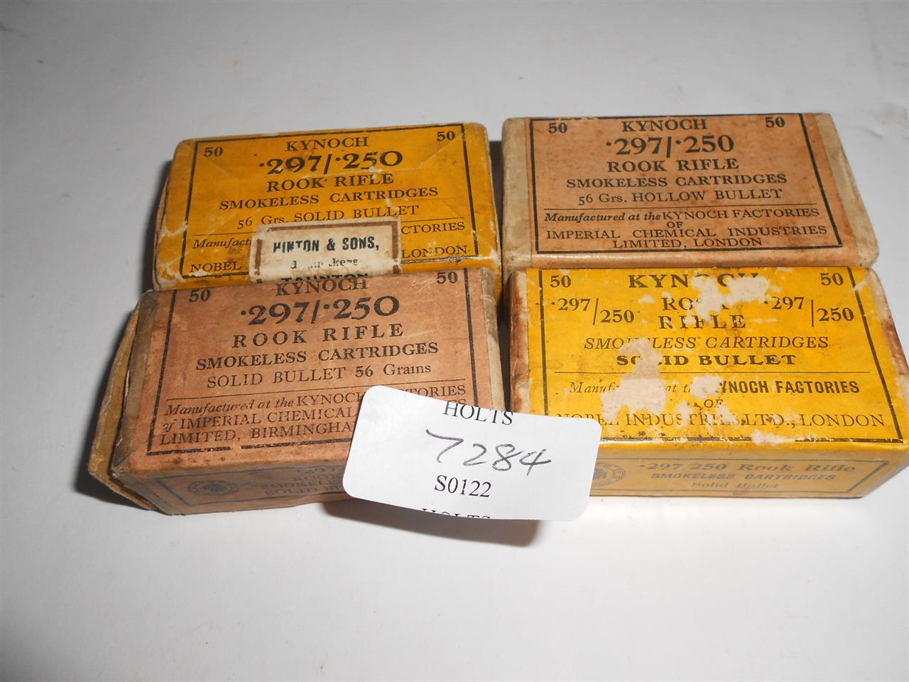 200 ROUNDS 297/250 ROOK AMMUNITION BY KYNOCH IN ORIGINAL RETAIL CARTONS, 150 56 grn SOLID, 50 HOLLOW POINT