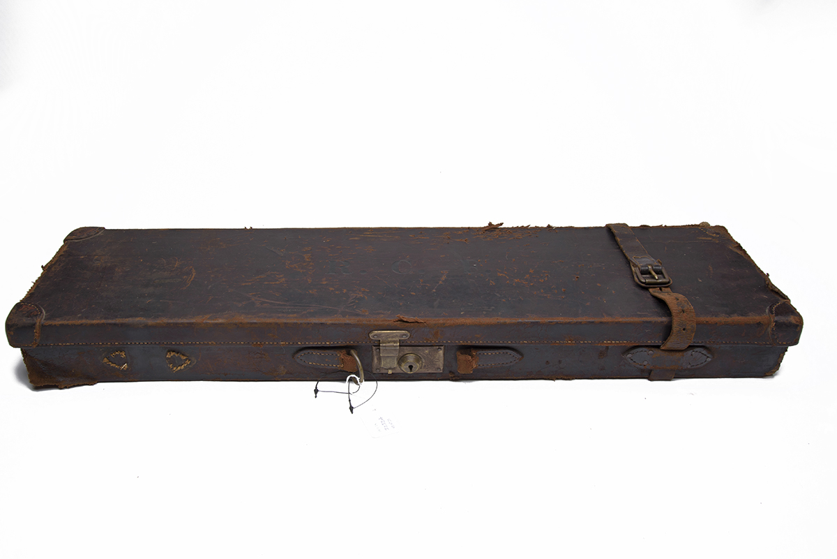 A WILLIAM EVANS LEATHER SINGLE GUNCASE, fitted with 30in. barrels, the interior lined with red baize, a leather William Evans trade label, brass lock (key missing), distressed