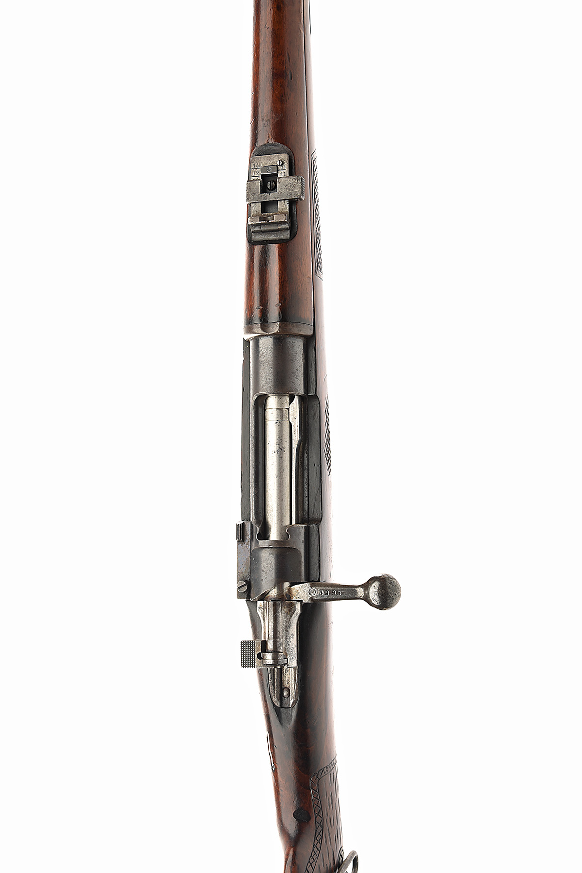 * A BOER WAR MAUSER 7X57mm 'MOD 1896' BOLT-MAGAZINE SERVICE RIFLE, serial no. 836, circa 1898, 18 1/4in. nitro barrel, block-mounted fore-sight, folding ladder rear-sight, manual flag safety, detachable floorplate, full-length straight stock with decorated stock