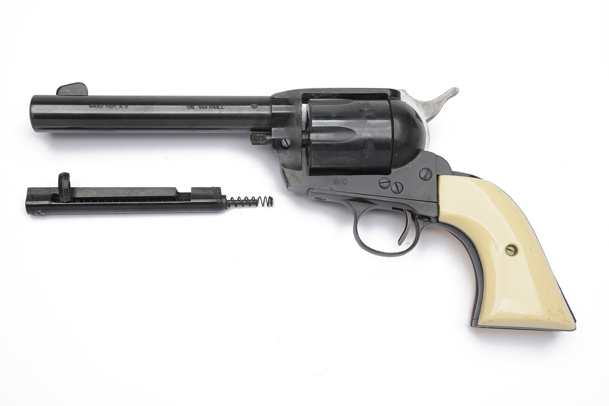 A .22 BLANK-FIRING REVOLVER SIGNED H. SCHMIDT, MODEL SINGLE ACTION ARMY, no visible serial number,