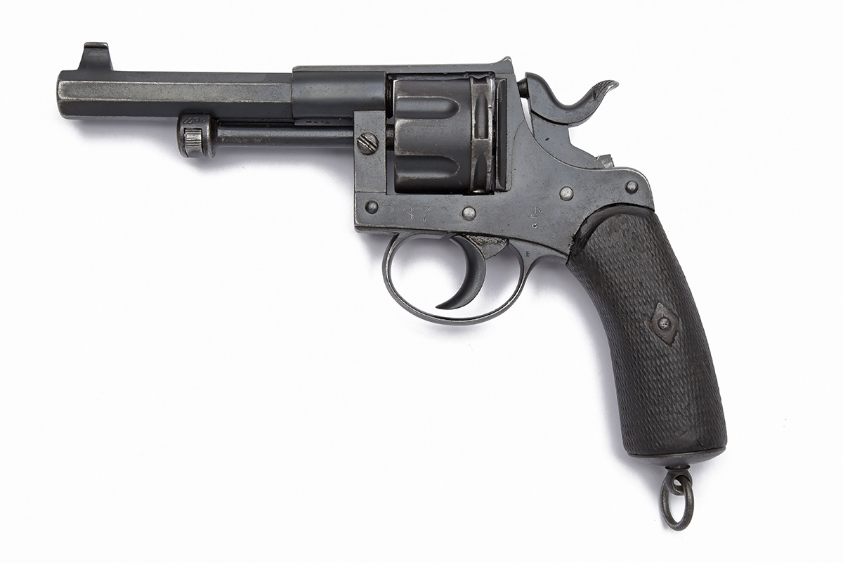 A 9.4mm (DUTCH) SIX-SHOT REVOLVER, UNSIGNED, MODEL 'WARNANT'S PATENT', serial no. 2872, almost certainly ex police circa 1920, with octagonal 4 1.4in. barrel, solid frame with load gate, stepped and fluted cylinder and chequered wood grips