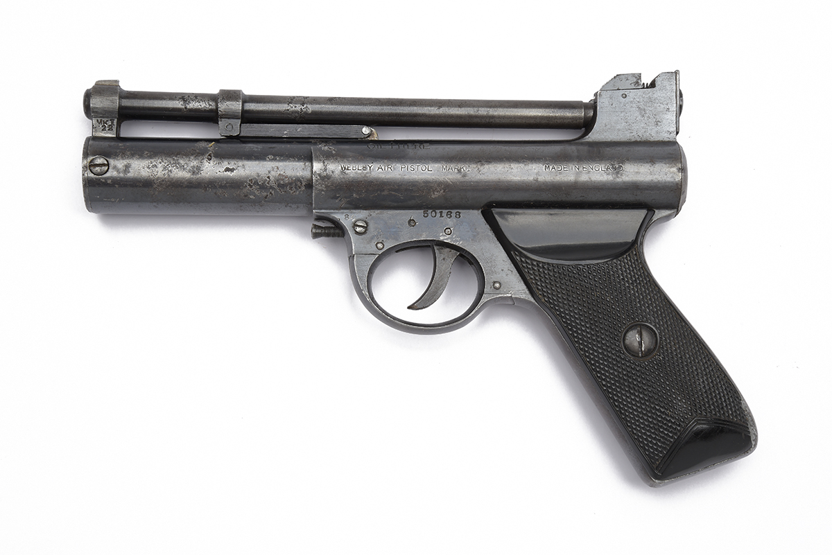 A .22 BARREL-COCKING AIR-PISTOL SIGNED WEBLEY & SCOTT, MODEL 'MK1' batch no. 168, with a 6 1/2in. barrel, open sights, black vulcanised hand grips.