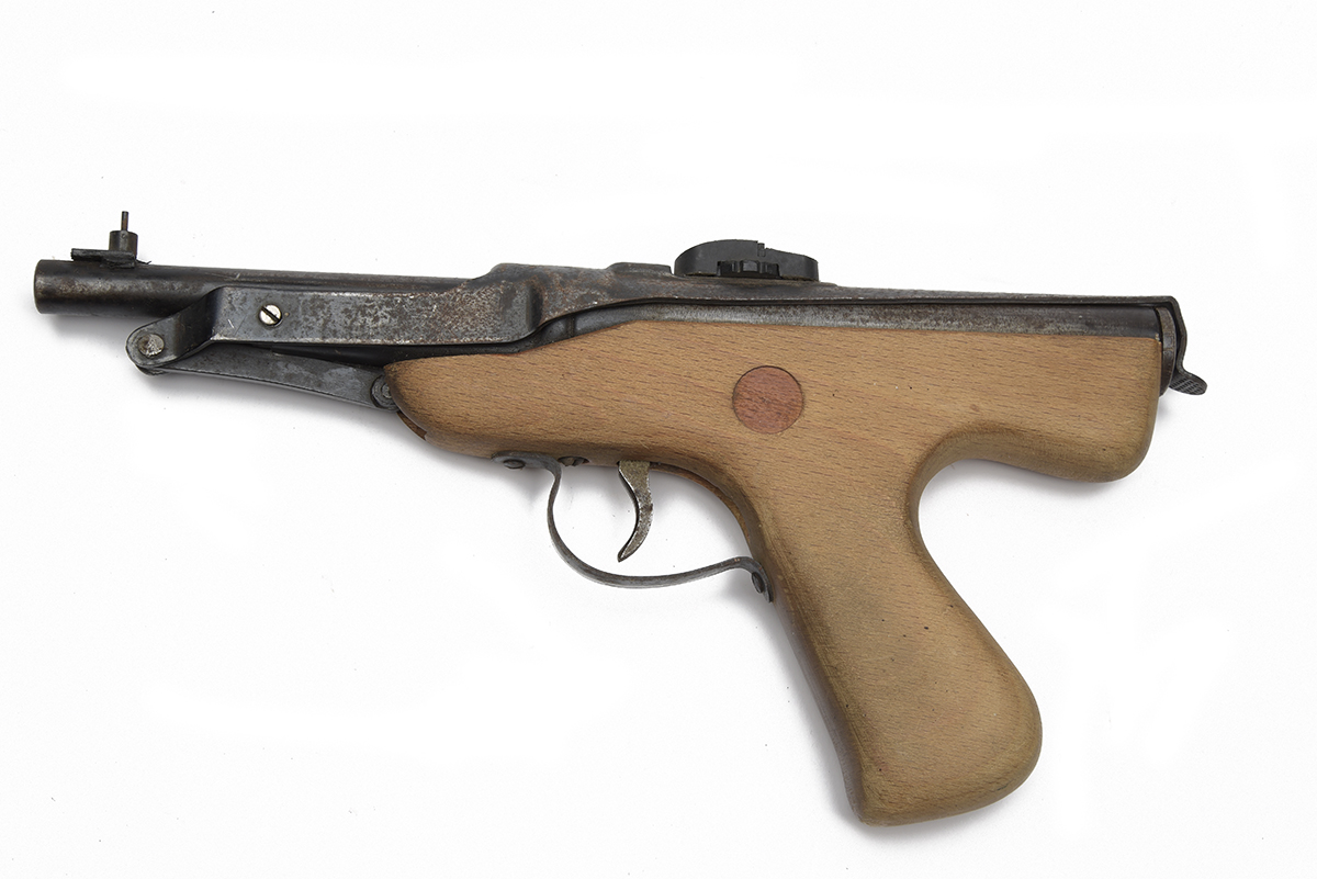 A .177 LEVER-COCKING AIR-PISTOL, UNSIGNED, MODEL MILBRO-DIANA MKIV, no visible serial number,