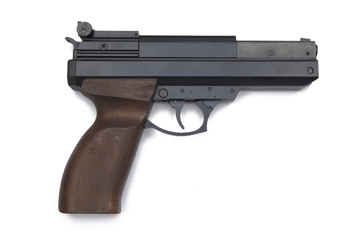 A SCARCE .22 SLIDE-COCKING AIR PISTOL SIGNED BSA, MODEL 240 magnum serial no. AN03492,
